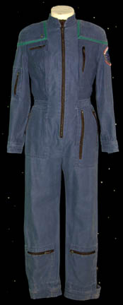 A costume full length jumpsuit made of soft synthetic material that changed color from blues, to purple, to pink in various places. The costume was featured in the Star Trek: The Next Generation episode “Cost of Living” for wear by a ‘juggler' in the holodeck visited by “Lwaxana Troi” (Majel … |