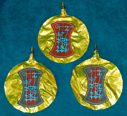 A trio of metallic gold colored props with matching plastic spigots and Vulcan differing iconographic applications adhered to both the front and reverse sides made for use in the Star Trek: Enterprise episode “Carbon Creek”. When a Vulcan scientific scout vessel crash lands on Earth in Pennsylvania in the year … |
