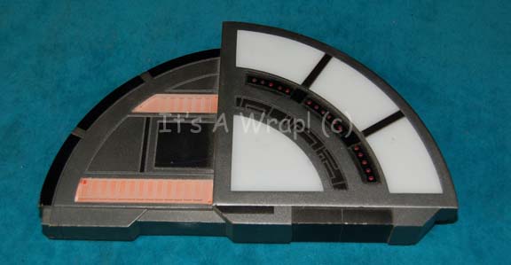An item believed to have been featured in any one of the various Borg related Star Trek: Voyager episodes. The item is shaped wood painted metallic bronze with a vacuum formed section of the base. The item features working backlighting for a piece of smoked acrylic with a Borg themed … |