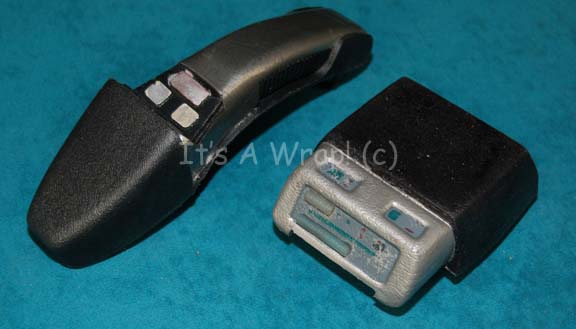 A prop explosive timer appearing in the Star Trek: Enterprise episode “Vanishing Point”. The item is fashioned from molded resin painted metallic gunmetal with multi-colored accents with opaque white acrylic ‘screens’. The item features connection points for telephone wiring, a series of embedded red lights, and an on/off switch. Measures … |