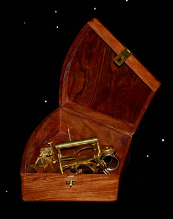 A presumably functional brass sextant with a corresponding wooden box with a hinged lid and latch. Sextants made appearances in various episodes of both Star Trek: The Next Generation and Deep Space Nine as one was known to have been kept on one of “Captain Picard's” (Patrick Stewart) desk in … |