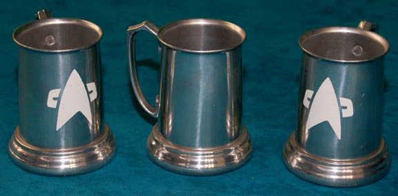 This set of three miniature Starfleet tankards are believed to have been used during filming on the Star Trek: Deep Space Nine series. Each tankard is made of metal with a handle and two feature complete Starfleet arrowhead logos. The third tankard is plain. Due to time and use the … |