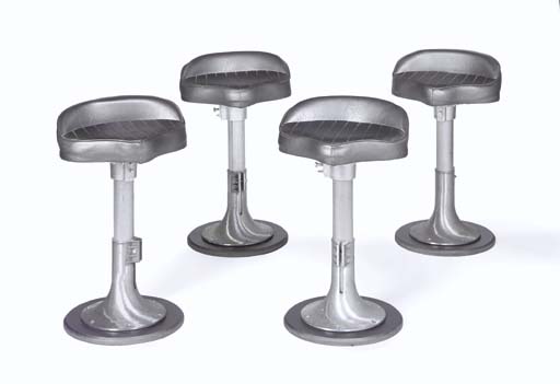 Four imitation leather-covered stools with aluminum pole bases -- used in the <I>Enterprise-E</I> engine room set (4) |