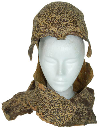 A special effects make-up full head wrap intended to be an adult Suliban appearing variously in episodes of Star Trek: Enterprise. The item is molded foam rubber made to appear blotched and painted brown with a topcoat of tan. The item is in good condition overall with a supple feel … |