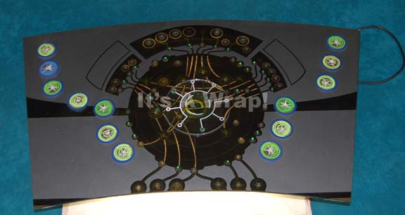 A piece of set dressing featured in the third season Star Trek: Enterprise finale “Zero Hour”. This item was part of the command center console inside the Xindi Superweapon, it consists of a piece of smoked acrylic shaped especially to fit in this console, dark-gray application across the top surface … |
