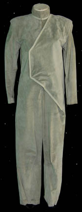 A costume featured in the Star Trek: The Next Generation episode “The Outcast” for wear by one of the androgynous J'Naii civilians aided by the presence of the “Enterprise-D”. The costume is an attractive blue suede jumpsuit with an asymmetrical zip and Velcro front, a dickie with pleated collar, and … |