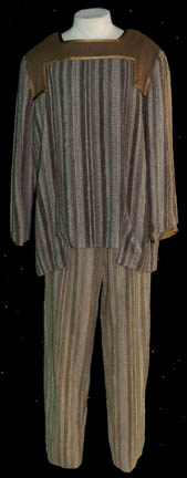 This costume was featured in the Star Trek: The Next Generation episode “Thine Own Self” wherein “Data” (Brent Spiner) suffers amnesia while on an away mission to collect radioactive fragments from a probe that crash landed on the pre-industrial planet of Barkon IV. The costume is a mauve and blue … |