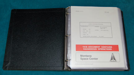 A prop launch manual from the missile silo complex set in Star Trek VIII: First Contact, the site from which the “Phoenix” was launched. The item is a black binder with a graphical application adhered to the spine depicting a bar code, the emblem of the ‘United States Air Force’, … |