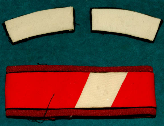 A pair of red engineering division-rank strips featured on Starfleet uniforms in Star Trek I: The Motion Picture. The item is red fabric on a black felt board with a gold thread line on one end indicating the wearer to be an undisclosed rank. This style of accent would have … |