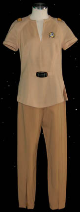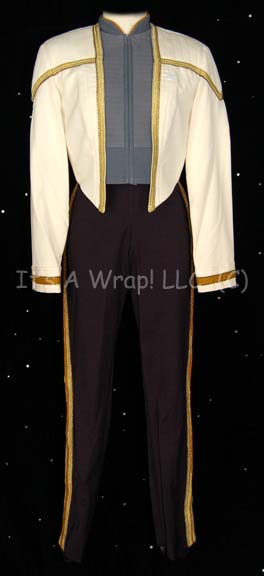 A costume first appearing in Star Trek IX: Insurrection, later in episodes of Star Trek: Deep Space Nine, and finally during the wedding scenes in Star Trek X: Nemesis. The costume is a full length sleeveless black jumpsuit with gold colored piping running down the outside seams of the legs … |