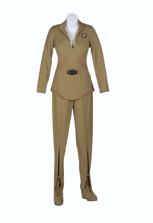 A khaki Class-A officer's shirt, with <I>Paramount</I> label inside inscribed <I>Marci</I> [sic], with a corresponding pair of pants -- made for Marci Lafferty in <I>Star Trek: The Motion Picture</I>; and a corresponding wardrobe tag (2) |