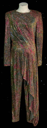 This costume was featured in the Star Trek: Deep Space Nine episode “Children of Time” for wear by Miranda O'Brien (Jennifer Parsons) in her role as a descendant of “Chief O’Brien” (Colm Meaney) in an alternate timeline. Costume is a purple fleece dress with multi-colored flecked stripes over a matching … |