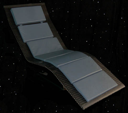A style of chair featured in various episodes of Star Trek: Deep Space Nine and in Star Trek: Voyager as well. The item is a black plastic lounger with Velcro placements for affixing included topaz colored pads. The item stands on a firm base. A chair like this appeared in … |