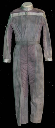 A costume type featured in multiple Star Trek: The Next Generation episodes for wear by Federation scientists and researchers. This item appeared in the episode “A Matter of Time” and is made up of a full length jumpsuit with gray and light plum colored fabric and multiple reflective strips at … |