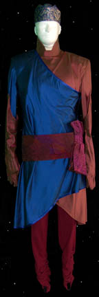 A costume featured in the Star Trek: The Next Generation episode “The Perfect Mate” for wear by “Briam” (Tim O'Connor), an alien ambassador escorting a gift for an old adversary. The costume is a pair of maroon colored trousers with bunched ankles, an opposing set of blue and maroon top … |