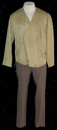 A costume featured in the Star Trek: The Next Generation episode “The Most Toys” for wear by “Palor Toff” (Nehemiah Persoff), an alien merchant and trader who was unimpressed by the acquisition of “Data” (Brent Spiner) by his associate “Kivas Fajo” (Saul Rubinek). The costume is an elaborate full length … |