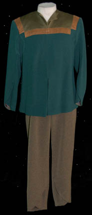 A costume featured in various seventh season episodes of Star Trek: Deep Space Nine. A Starfleet uniform in the style that made its first appearance in Star Trek VIII: First Contact; comprised of a long-sleeved, full-length black jumpsuit with gray quilted shoulders, a form fitting elastic waistband sewn inside with … |