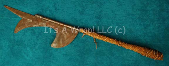 A prop weapon similar to those featured in the Star Trek: Voyager episode "Hunters"; wherein the Voyager crew comes upon the relay station they used to send messages back to the Alpha Quadrant. This item consists of a metal staff wrapped in leather strap and then tied tight with more … |