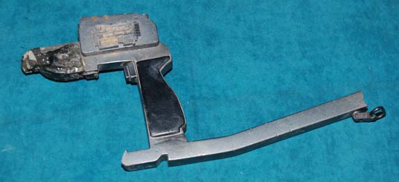 A molded resin element remaining from a broken Jem’Hadar carbine like those appearing variously in episodes of Star Trek: Deep Space Nine. The item features multiple raised features molded into the cast resin of its construction. The interior unpainted make up of the item is visible in several places. The … |