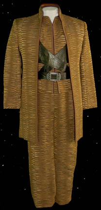 A lot of two costumes featured in various episodes of Star Trek: Deep Space Nine. The first costume is from the episode “The Circle” and is that of the Kressari captain supplying “The Circle” with its weapons and consists of long-sleeved, ribbed, green-velvet jacket with textured, vertical stripes and dark … |