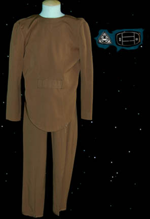 A brown colored Class-A Starfleet uniform featured in Star Trek I: The Motion Picture. The costume is brown trousers with a brown uniform top. The lot comes with these unattached items, a bio-monitor and a white backed Epsilon IX assignment patch indicating the wearer to be a member of the … |