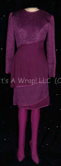 A costume featured in the Star Trek: The Next Generation episode “Galaxy’s Child”; wherein the woman who designed the engines on the “Enterprise-D” comes aboard and the crew accidentally kills a spacebourne life form about to give birth. This costume consists of a long-sleeved purple blouse featuring an abstract, textured … |
