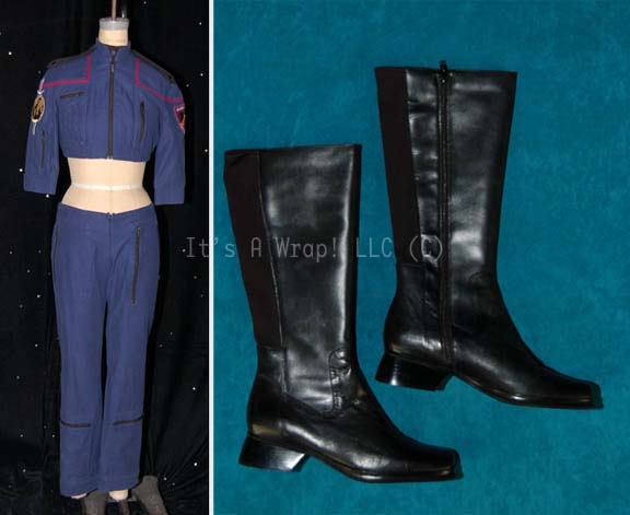 An extremely rare costume featured in the Star Trek: Enterprise episodes “In a Mirror, Darkly, Parts I and II”. This costume is a Starfleet Uniform from the Mirror Universe, thus it consists of hip hugging cropped trousers with a midriff bearing cropped uniform top with cropped sleeves. The uniform features … |