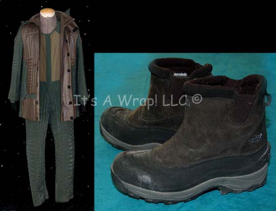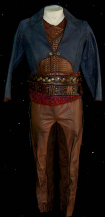 A costume featured in the Star Trek: Enterprise episode “Acquisition” for wear by “Grish” (Matt Malloy), a Ferengi pirate whose ship captured “Enterprise NX-01” in an unsuccessful attempt to steal the ship's stores. The costume is an elaborate brown vinyl jumpsuit with leather riding style accents, a brown woven leather … |