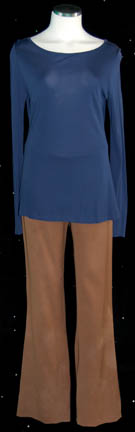 A civilian costume made for wear by “Dr. Beverly Crusher” (Gates McFadden) during the Star Trek IX: Insurrection film. The costume includes a blue long sleeved top with a scooped neck and corresponding brown trousers. Due to time use and storage there are several tiny holes in the trousers. The … |
