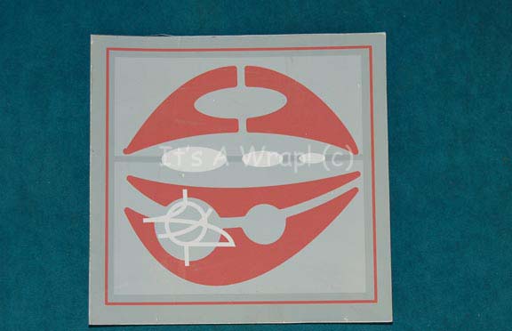 A cardstock application similar to those featured in various third season episodes of Star Trek: Enterprise involving the Xindi; it has a Xindi design and iconographic symbols, and adhesive strips on the back. The item measures approx. 7 X 7 inches with a slight bend and a crease across the … |