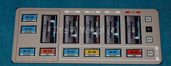 A large sized button panel like those appearing variously on the set of the “Enterprise NX-01” of Star Trek: Enterprise. The item is a large sheet of smoked acrylic with beveled edges and a graphical application adhered to the face. The item is also adorned with rubber faux buttons, a … |