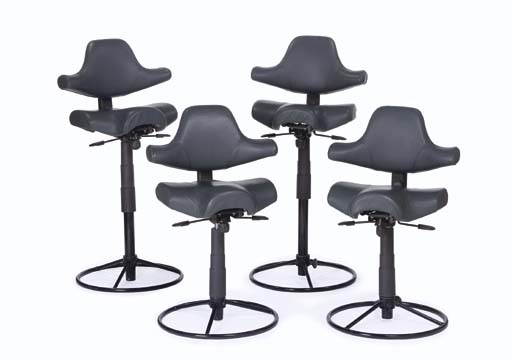 Four imitation leather-covered adjustable office chairs with round bases -- used as set dressing in the engine room of the <I>Enterprise-E</I> in <I>Star Trek: First Contact</I> (4) |