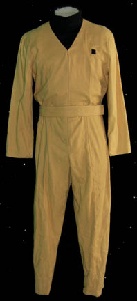 A costume featured in the Star Trek: The Next Generation episode “The Icarus Factor” for wear by a ‘Starbase Montgomery' technician. The costume is a sleeveless yellow full length jumpsuit with a form fitting elastic waist, accents around the shoulders, and a dual direction zip front. The costumer’s tag reads … |
