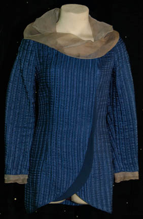 A costume featured in the Star Trek: The Next Generation episode “The High Ground” for wear by actors portraying police attempting to thwart the attacks of ‘Ansata Rebels'. The costume is blue textured trousers with a jacket top of matching blue wool and micro suede cuffs and shoulder accents. A … |