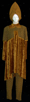 A costume featured in the Star Trek: The Next Generation episode “Redemption” for wear by Whoopi Goldberg in her portrayal of “Guinan” during which she attempts to convince “Worf” (Michael Dorn) of his commitment to honor and the truth. The costume is textured trousers and crushed velvet top with shoulder … |