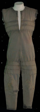 A costume featured in the Star Trek: The Next Generation episode “The Hunted' for wear by an ‘Angosian’ prisoner. The costume is a full length, sleeveless, gray jumpsuit with padded knees, pockets, and a line of padding around the chest. The costume zips halfway up the front and features a … |