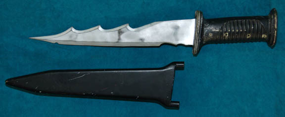 A prop knife the style of which appeared in the Star Trek: The Next Generation episode “Tapestry” for use by a Nausicaan thug who antagonized a young “Jean-Luc Picard” (Patrick Stewart) into a bar brawl, thus resulting in his artificial heart. The knife is molded rubber painted metallic silver with … |