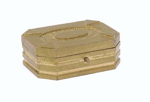 A small, hinged octagonal-shaped plastic box painted as gold -- <I>2x2¾in.</I> -- used as Grand Nagus Zek's beetle snuff box in several <I>Deep Space Nine</I> episodes including "Ferengi Love Songs" |