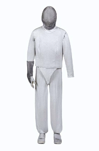 A silver jumpsuit, jacket, glove, fencing mask, and shoes -- worn by Whoopi Goldberg as Guinan in "I, Borg" in <I>Star Trek: The Next Generation</I> (6) |