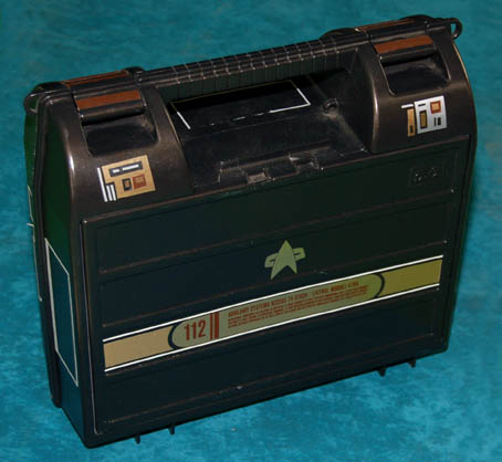A black plastic carrying case appearing in Star Trek episodic television or feature films, most likely Star Trek: Deep Space Nine or Voyager. The item featured multiple accents of metallic gold and silver adhesive and a similarly fashioned Starfleet emblem on both sides of varying size. A Starfleet inventory application … |