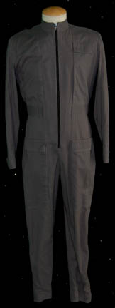 | (Paramount-TV, 2001-2005) Gray away mission jumpsuit worn by Jolene Blalock in the first season episode, “Sleeping Dogs”. Includes attached under-bra. Internal Enterprise costume label handwritten in black ink, “Jolene Blalock”. |
