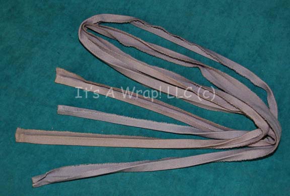 A pair of fabric strips featured on the costume trousers of Starfleet uniforms in Star Trek feature films. The items are folded over and stitched sealed; meant to be sewn onto the outside seam of trousers to indicate the wearer to be a member of the special services division. The … |