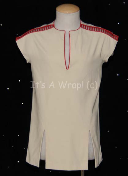 A Starfleet trainee’s uniform appearing variously in Star Trek feature films. The costume is a red jumpsuit with a tan yoke and black accents and features a red ribbed collar and sleeve cuffs indicating the wearer to be a trainee, with belt loops on the front. The costume comes with … |