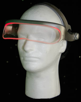 A prop item featured in the Star Trek: Enterprise episode “Rogue Planet” for wear by Eska hunters. The item is a fashioned plastic headband with a size adjusting twist lock in the rear and a clear eye visor on a pivot in the front. A switch on the right side … |