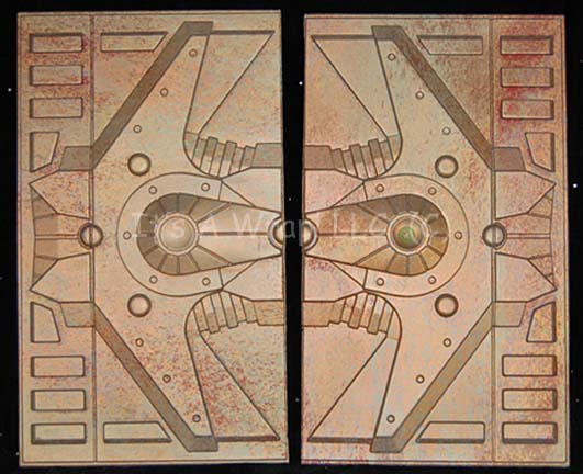 A pair of vacuum formed wall panels with wood frames featured in multiple Star Trek: Enterprise episodes including “Impulse” and “The Council”. The items are wall panels that appeared in the Vulcan ship “Seleya” and in “Commander Dolim’s” (Scott McDonald) Xindi-Reptilian ship. The panels are vacuum formed plastic with wood … |
