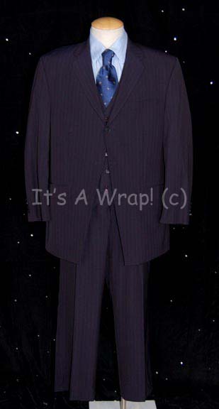 A costume featured in the Star Trek: Enterprise episodes “Demons” and “Terra Prime” for wear by the stand-in for veteran science fiction actor Peter Weller as “John Frederick Paxton”, the leader of the xenophobic extremist group “Terra Prime”. The costume is a beautiful, three-piece dark blue pin stripe ‘DKNY’ name … |