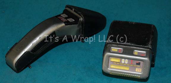 A pair of props featured variously in Star Trek episodic television for use by characters in Starfleet or the Federation, a tricorder and phaser, both molded into holsters. The items are intended to appear as though they can be removed and used, but were not the hero props for the … |