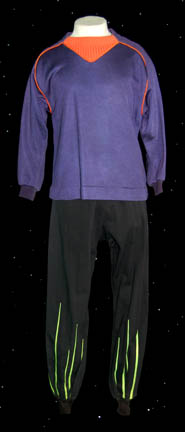 A costume featured in various episodes of Star Trek: Deep Space Nine. This costume consists of a sleeveless, full-length, jumpsuit with the top half a black, spandex-like material, the bottom being neoprene over a gray fabric featuring a starburst pattern down the middle and stirrups for the feet; a distressed … |
