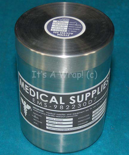 A set dressing item appearing variously in episodes of Star Trek: Enterprise on the set of the “Enterprise NX-01” sickbay. The item is a fashioned metal container with a clear plastic window in one side and a matching metal lid. The lid and the container both feature Starfleet inventory applications, … |