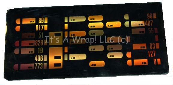 An LCARS (Library Computer Access and Retrieval System) console interface created for use in Star Trek: The Next Generations, Deep Space Nine, or Voyager. The item is a piece of smoked acrylic with rounded corners, and a multi-colored graphical application adhered to the reverse. The graphic is best viewed when … |